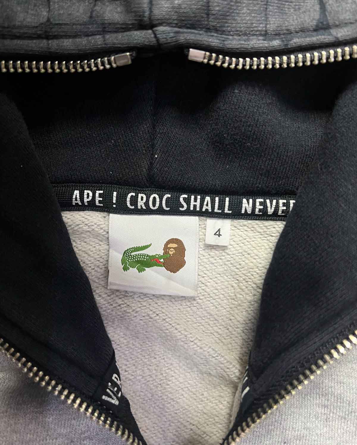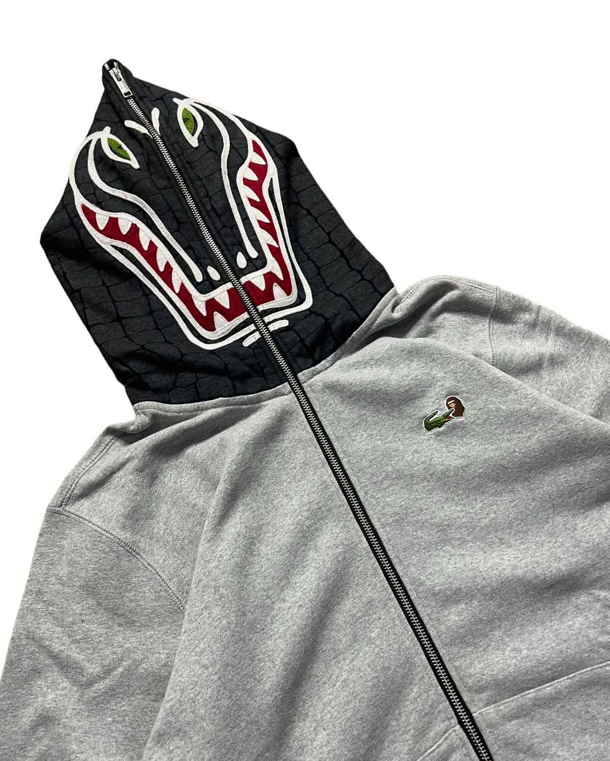 Ss 2015 Bape x Lacoste Alligator full zip us hoodie in grey colorway.