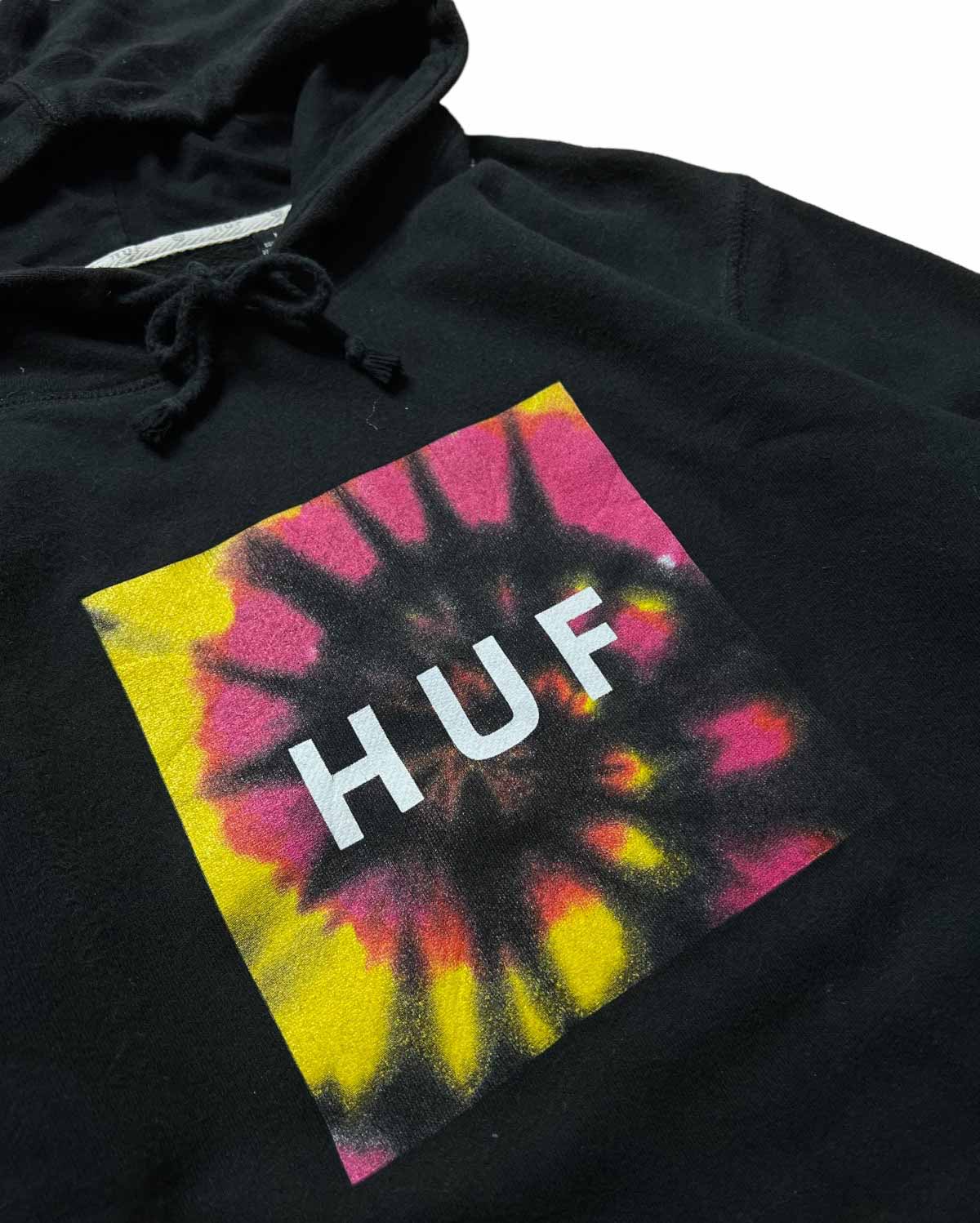 Huf is one of the og american streetwear label famous for its big bold box logos and graphics and this hoodie is one of those classics with a screenprinted box logo in the tie dye colorway.