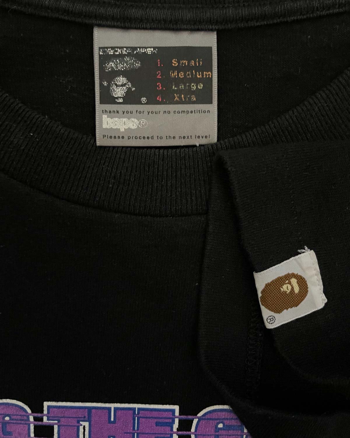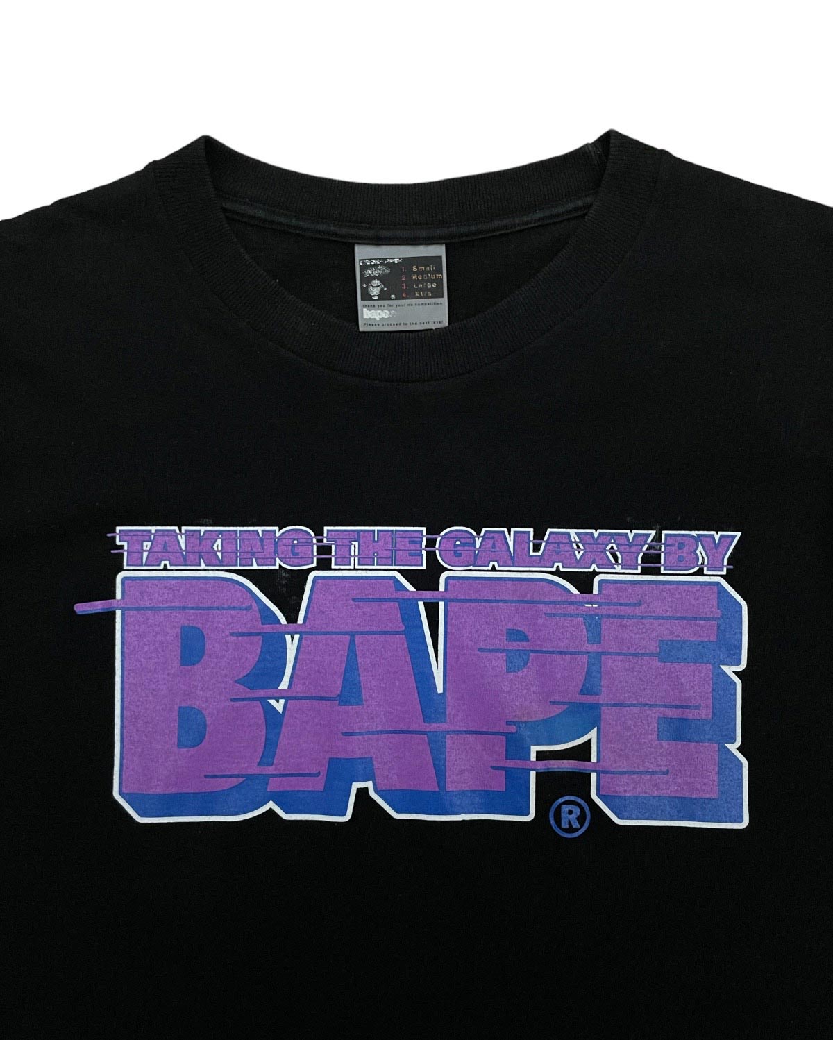 Vintage Bape japan by nigo Taking the galaxy by bape logo tee from early 2000’s on bape ideograph tag. This tee is from the era when in bape universe apes were going in space and conquering other planets and this theme also gave birth to the space camo idea. Bape was started by nigo in japan in 1993 as a streetwear fashion label with bold graphics and branding on products and soon it became a people favourite streetwear label and got loved by the whole streetwear community from biggie smalls to lil wayne in its early days.