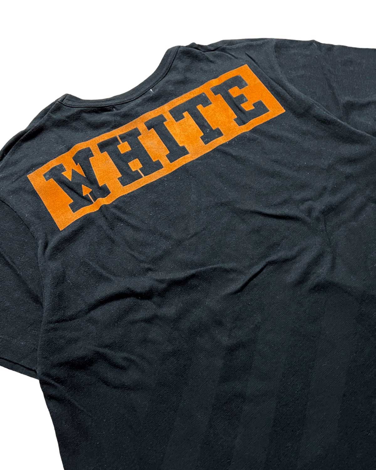 Off white was founded in 2012 by Late Virgil Abloh. Its first collection came out in 2013. This tee is from that first collection, comes in a black colorway with black crosswalk print and a velvet type WHITE spellout logo.