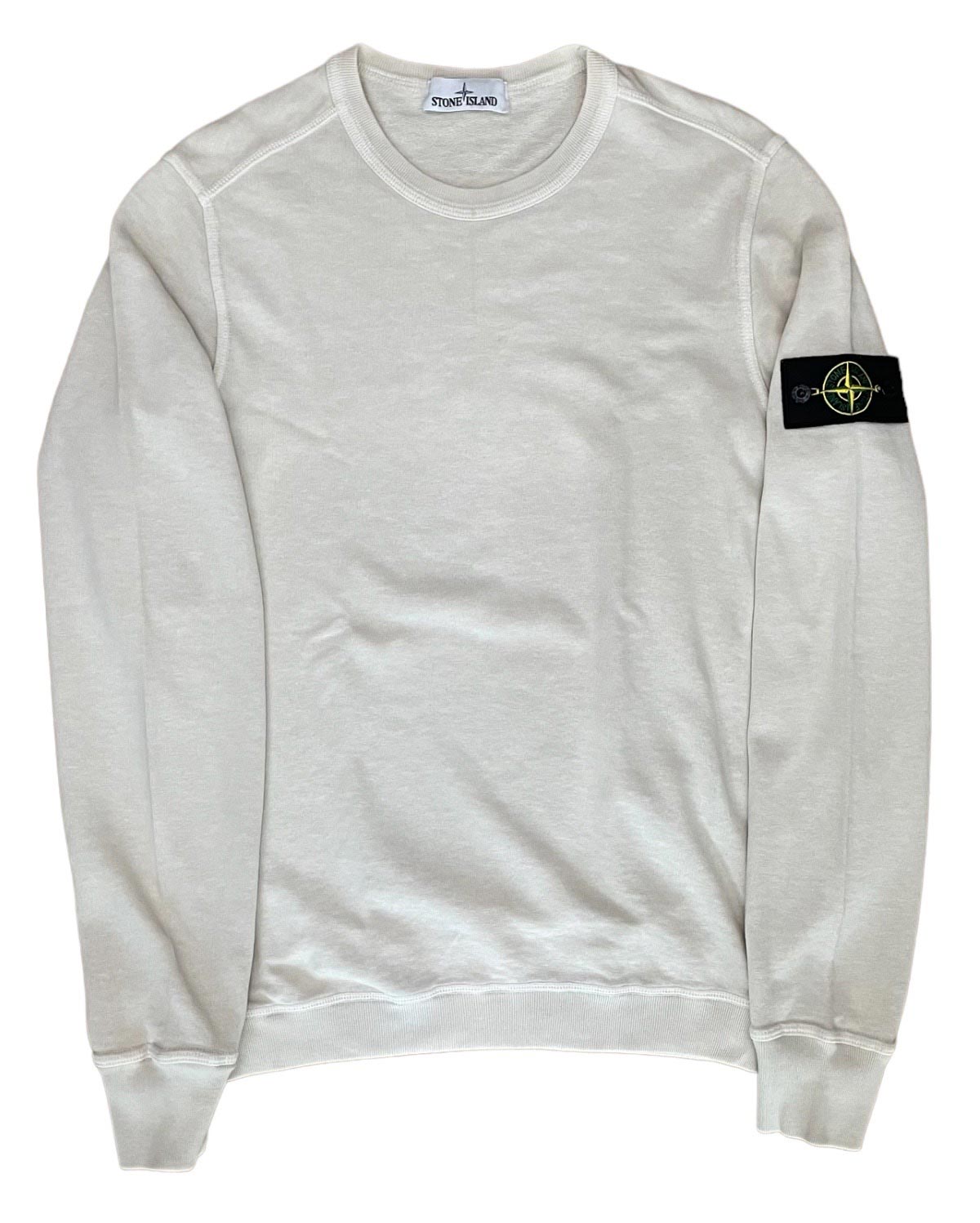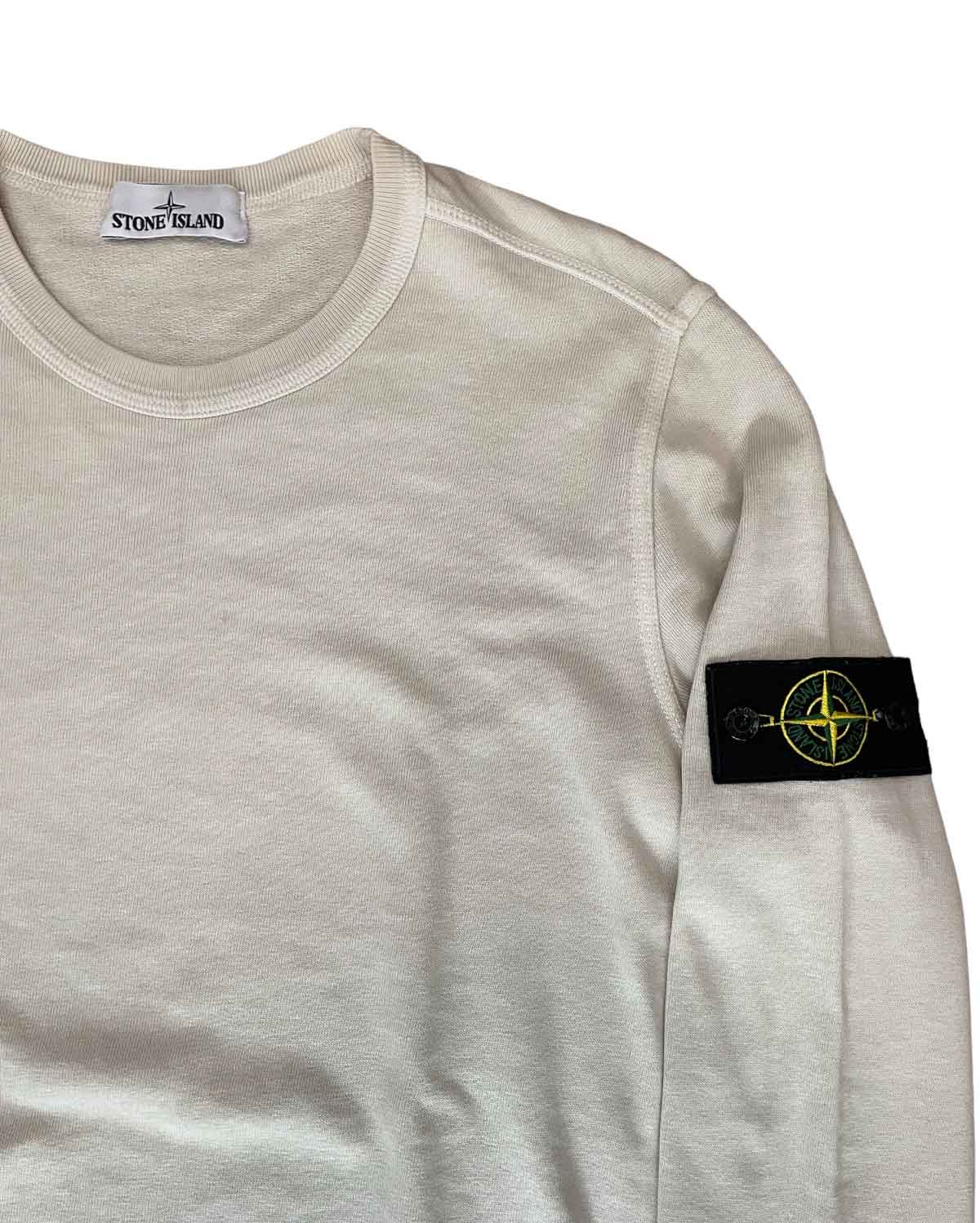 Spring summer 2020 Stone Island tactical crewneck in off white colorway with its iconic button up patch on the left sleeve. Stone Island is an Italian luxury men's apparel and accessories brand. It was established in 1982 in Ravarino.