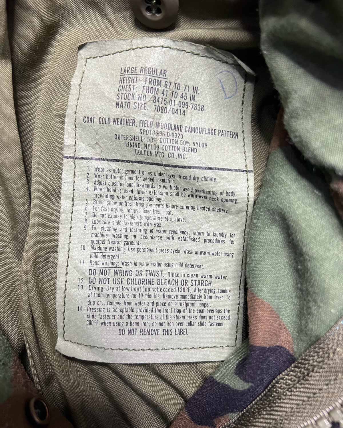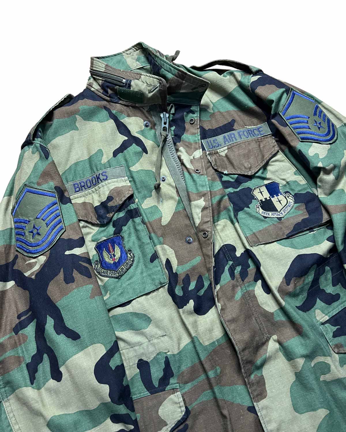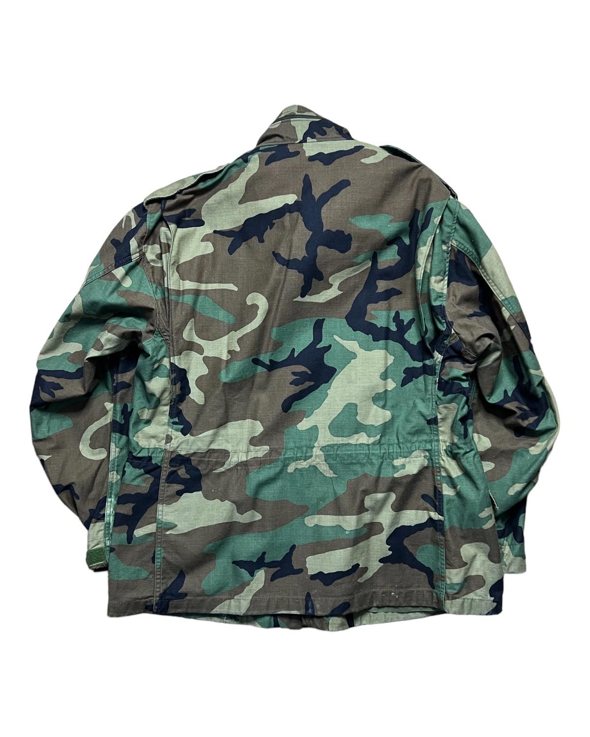 Vintage US army M-65 camo field jacket. this jacket was field issued, soldier name patch is still on chest.